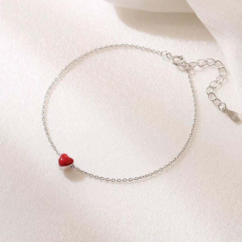 S925 Silver Bracelet Female Korean Style Red Heart Bracelet